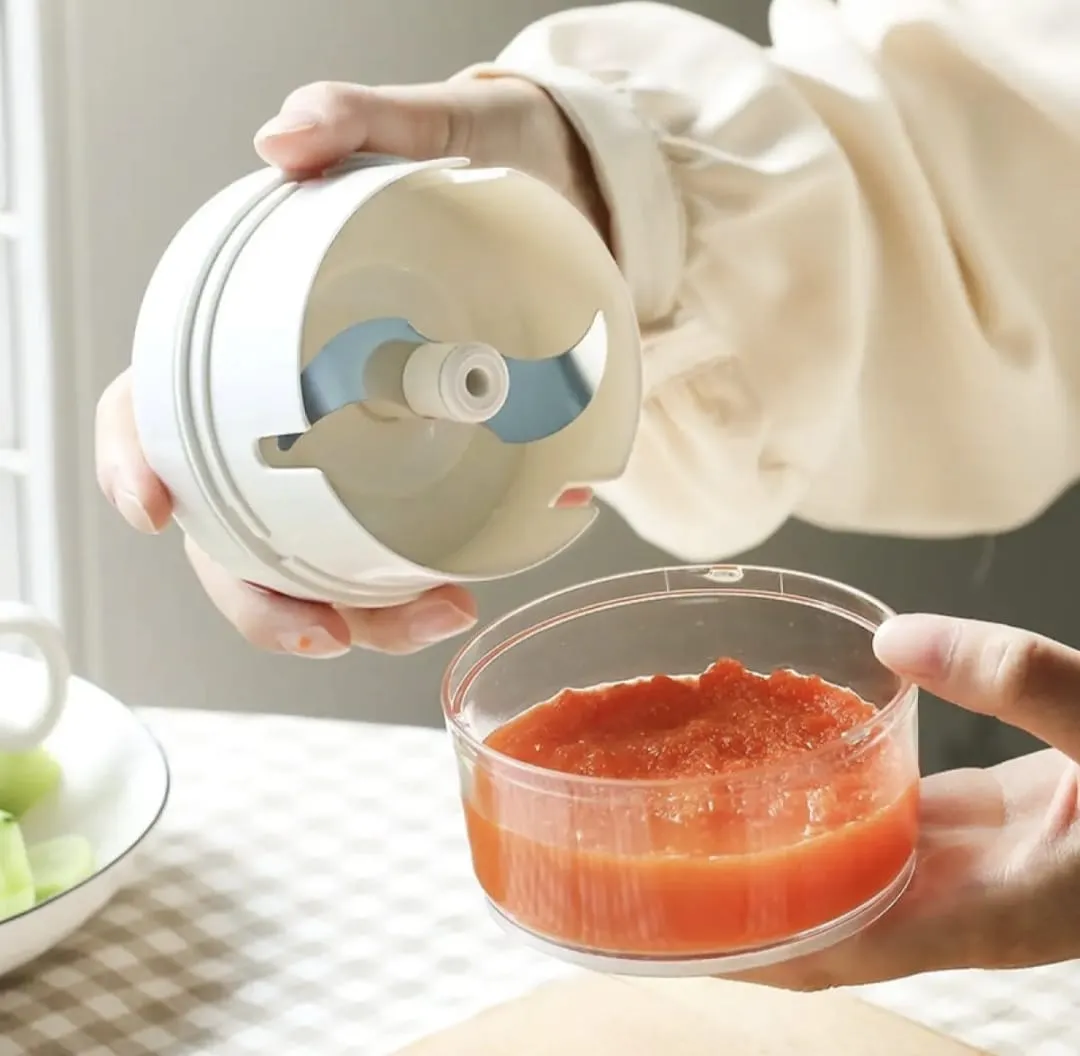 SPACE SAVING: This mini food processor has a capacity of 170ML and weighs about 5.64 ounces (160 grams). Small size, simple structure, compact size, and easy storage, it is very suitable for small kitchens. It can also be used as a baby food processor.